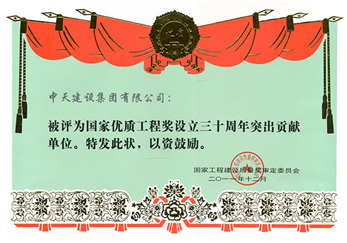 國(guó)家優(yōu)質(zhì)工程獎(jiǎng)設(shè)立三十周年突出貢獻(xiàn)單位
