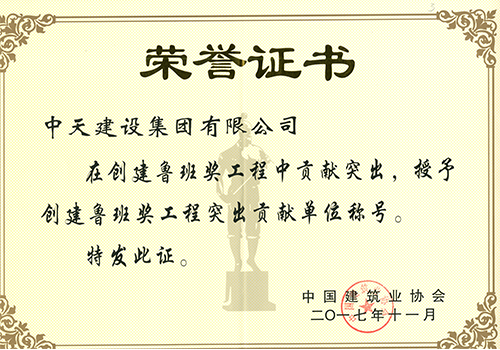 創(chuàng)建魯班獎(jiǎng)工程突出貢獻(xiàn)單位