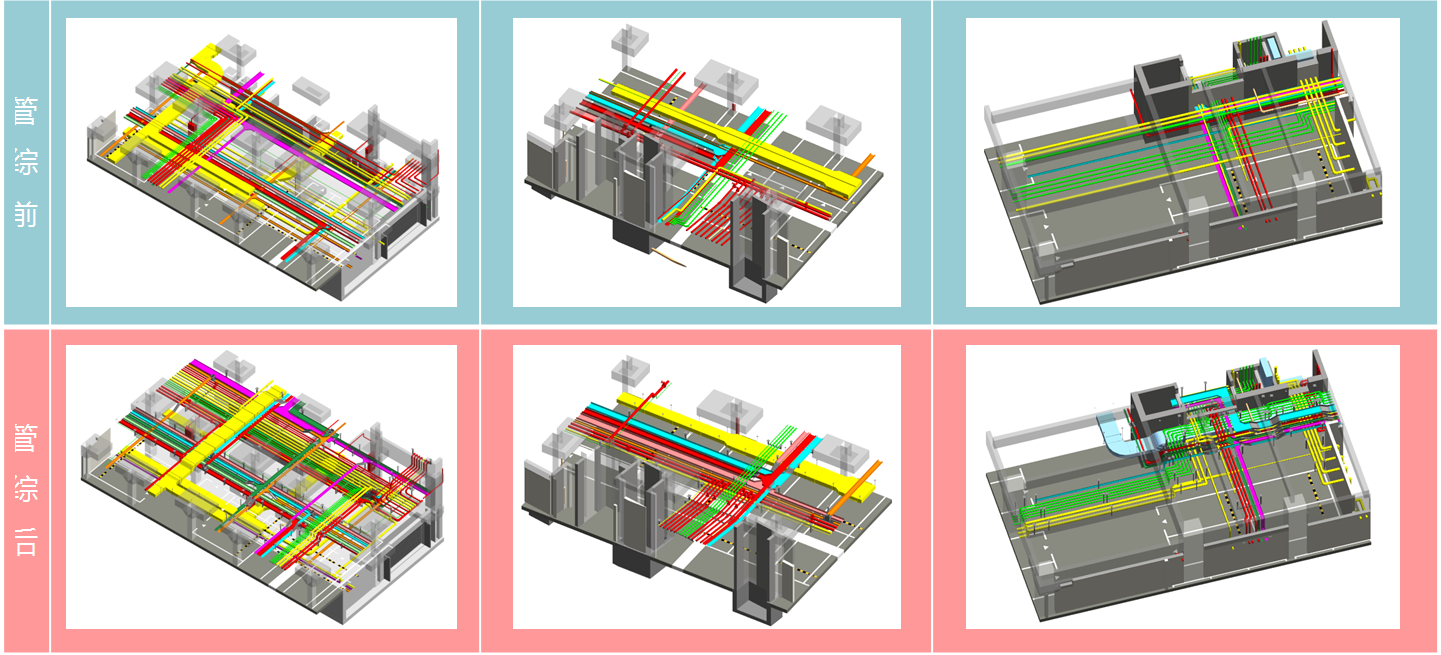 2、管線綜合優(yōu)化(優(yōu)點:項目施工之前就找到設(shè)計圖紙中的錯漏碰缺)
