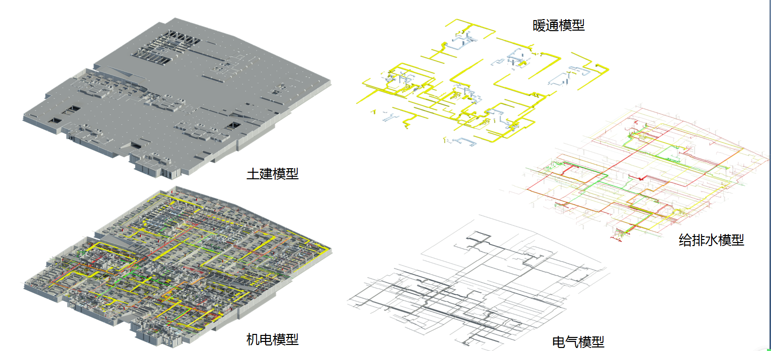 4、全專業(yè)建模 (優(yōu)點:以三維的方式完整展現(xiàn)各機電系統(tǒng),可以審核設(shè)計的完整性和準確性,解決聯(lián)系單的碎片化問題)