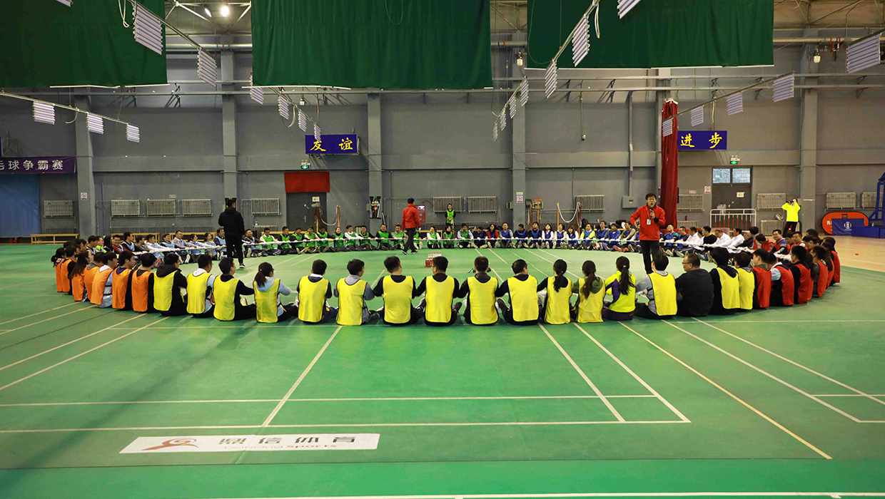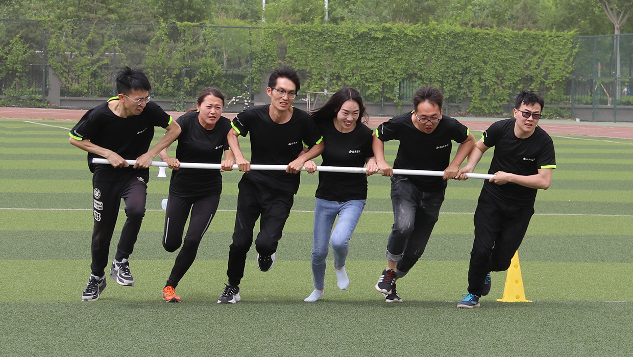 在北京集團創(chuàng)立22周年運動會上,全體成員共同搖晃動力繩圈2018下