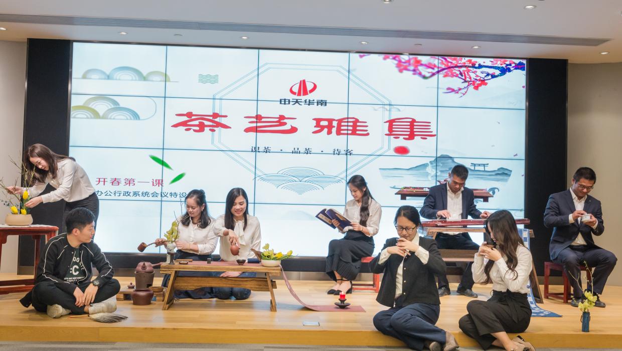 茶藝課上各顯神通的員工們
