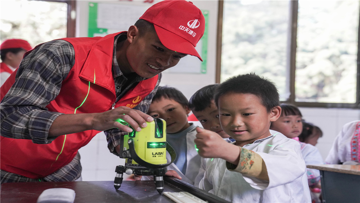 “他笑著說抓住了光?!痹谥刑彀私ǖ谒膶谩靶⌒〗ㄖこ處煛钡墓嬲n堂上,孩子們好奇地體驗(yàn)著激光掃描儀,感受建筑科技的獨(dú)特魅力