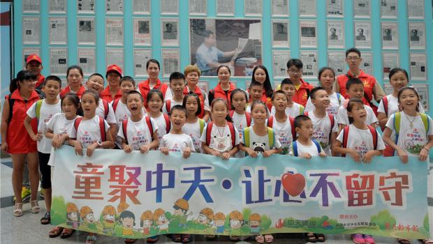 童聚中天讓心不留守活動,六建志愿者與小候鳥們合影